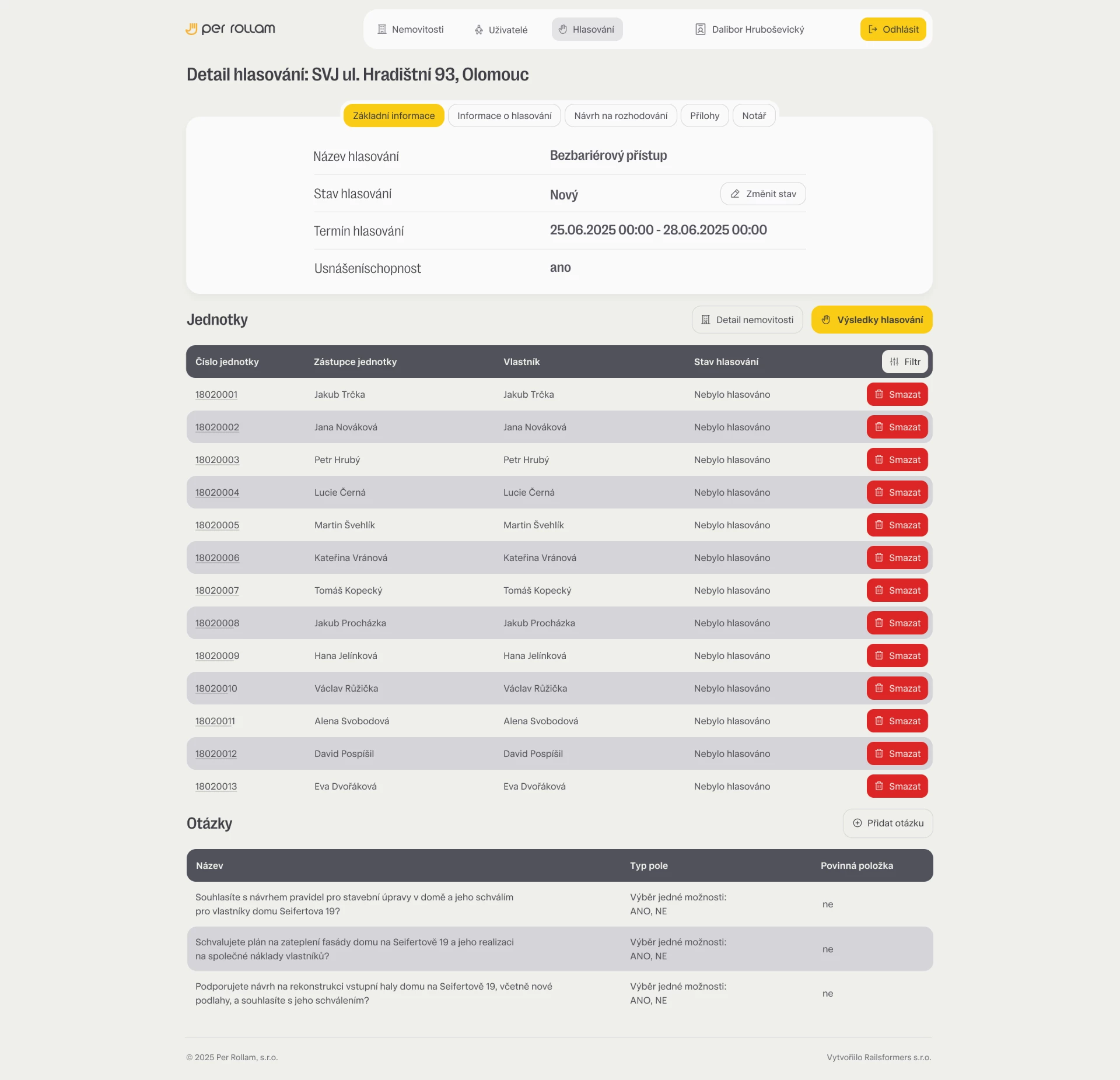 Digitalizace procesů je v posledních letech klíčovým tématem i v oblastech, které tradičně spoléhají spíše na papírovou dokumentaci a osobní schůzky. Příkladem může být hlasování v rámci společenství vlastníků jednotek (SVJ), kde je často nezbytné zajištění transparentnosti, právní uznatelnosti a efektivního sběru dat. Novinka na trhu, systém per-rollam.com, který jsme v Railsformers nedávno uvedli do provozu, představuje moderní řešení umožňující nejen rychlejší organizaci hlasování, ale také výrazně vyšší právní jistotu a pohodlí pro všechny zúčastněné.